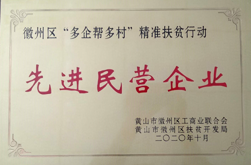 2020年10月13日,區工商聯、區扶貧開發局聯合在呈坎鎮容溪碼頭農產品展銷會上舉行“多企幫多村”精準扶貧行動先進民營企業表彰大會。包括我公司在內,徽州區共有20家企業獲此殊榮。