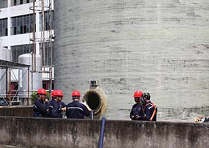 演練分兩個部分進行:第一部分是“有限空間安全作業的規范流程”演練。第二部分是“有限空間安全作業突發安全事故的應急救援演練”。